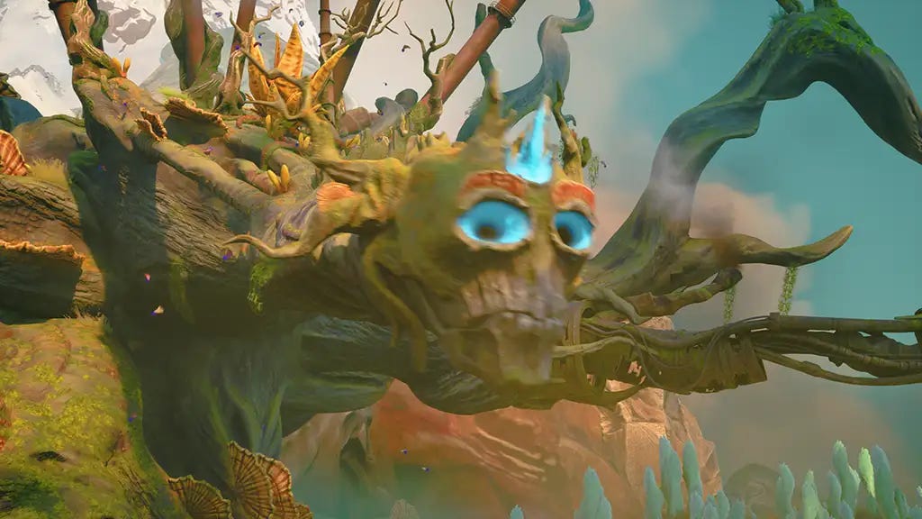 So, while the gameplay is satisfying – with intuitive controls and a well-implemented automated camera system – more than anything, it’s the world of Keeper that is intriguing. The graphics are among the most beautiful I’ve seen in a long time, where otherworldly flora and fauna mix with mechanical gadgets and creatures. For those who remember Roger Dean’s work on the old Psygnosis Amiga games (and Yes albums, if that’s your jam), you will have a very good idea of what to expect.