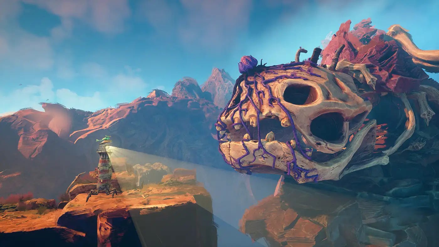 It’s easier said than done to explain what type of game Keeper actually is. Double Fine calls it a “puzzle adventure,” which is true, but that doesn’t fully capture the gameplay. A “surreal hiking simulator” might be more appropriate, but that’s too close to the oft disparaged “walking simulator.” Either way, hiking is one of Keeper’s core concepts. Project lead Lee Petty found inspiration during his treks at the height of the pandemic. As anyone who goes on hikes with any regularity will attest to, they’re not boring like “walking simulators”-detractors often try to make them out to be. Hikes, for many of us, are introspective, and, to me, that is what Keeper ultimately is. Introspective. That might not be a genre, but it should be: “Introspection,” sweeping the nation and returning us to some sort of normalcy, which, ultimately, is what Keeper is about. Moving forward while using your light to eradicate darkness.